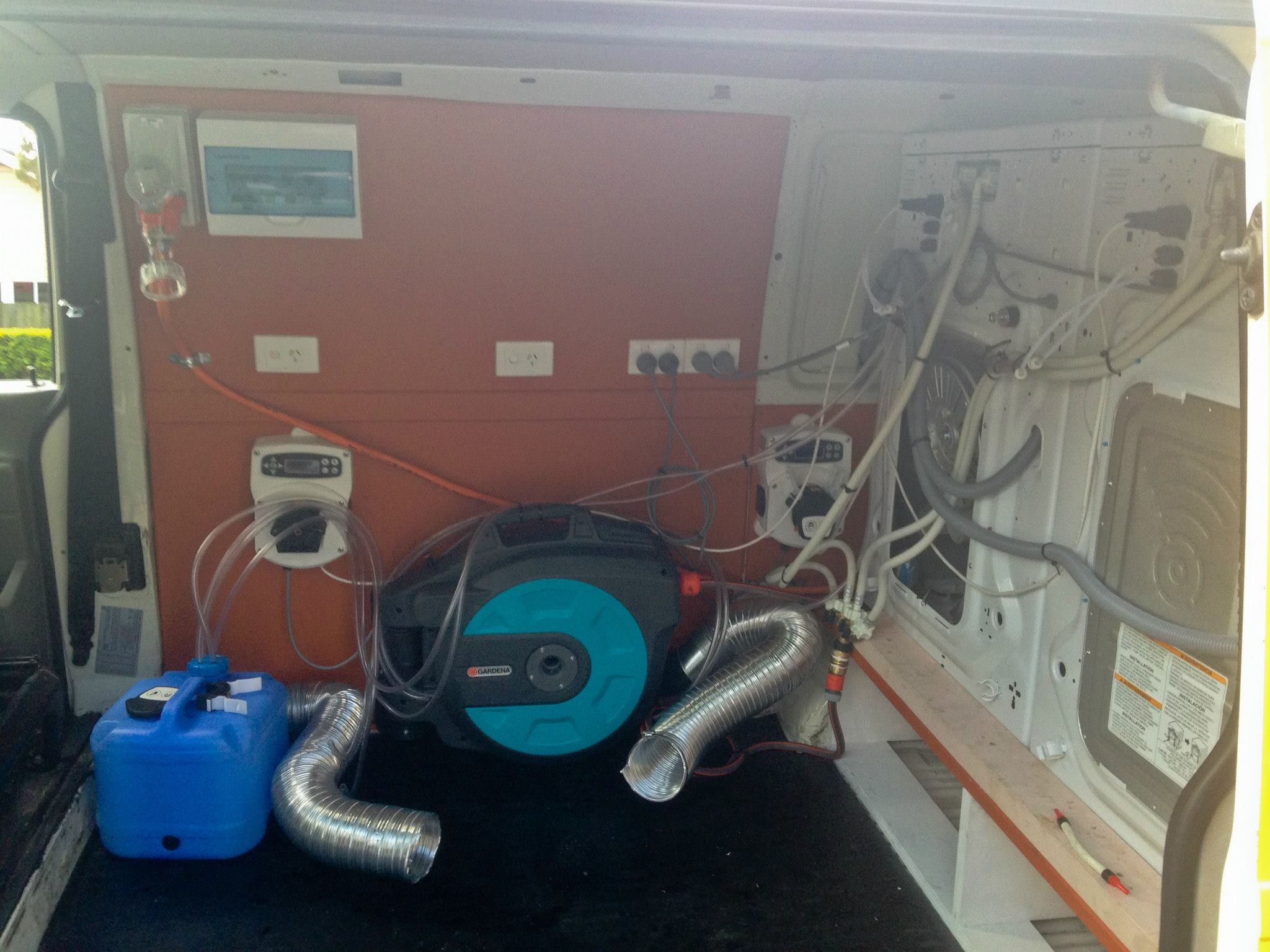 Seen here parts added that were designed within the van, chemical pumps which were given by Symbio, 25m retractable hose and parts for the dryers. lifebuzz-59573852