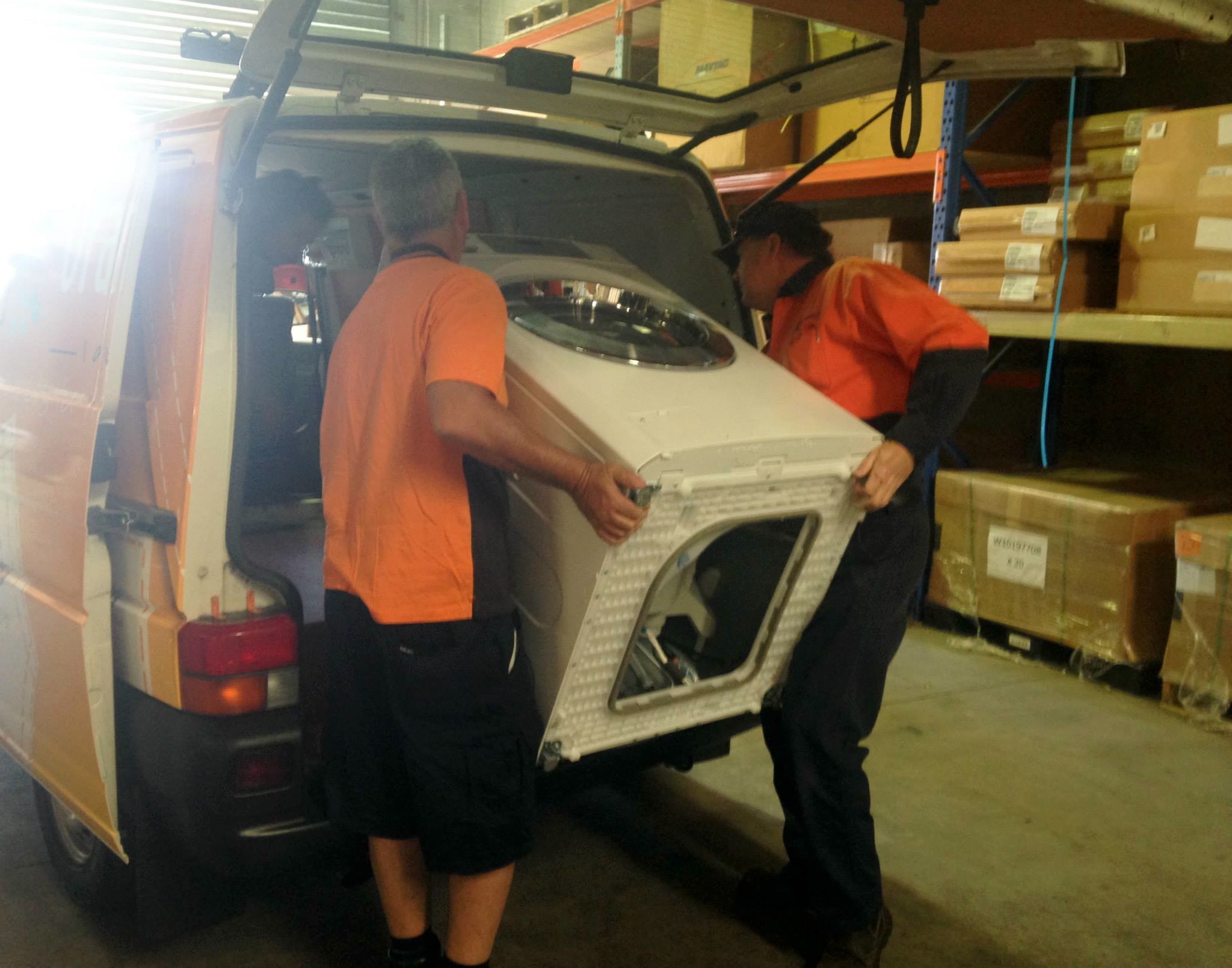 Unloading the first washing machine.