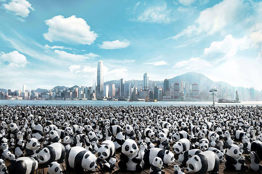 The World Wildlife Fund and the French artist Paulo Grangeon took a decision of working together to create 1,600 little paper-mache pandas in Taiwan. Once the project is done they wanted to show their work to 10 major Asian cities and lots of others around the world. The number 1,600 was not only a number, but each of the papers has got a real equivalent panda in real life. The number of pandas is decreasing because they have only 2 or 3 days a year for mating. These are some examples of the astonishing work they have done: