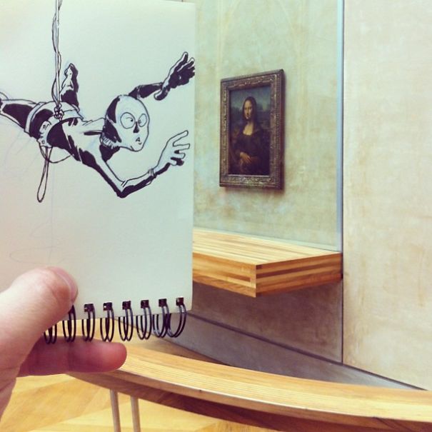 David Troquier, a director and illustrator from France, has an impressive way of expressing his humor. He creates humorous meanings by creating scrapbook doodles and places which fit their surroundings. Here are some examples of his creative and inspiring imagination.
