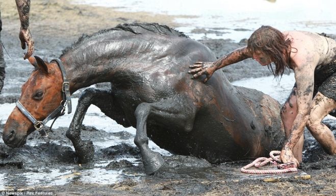 A nice farmer helped by providing his tractor to pull out the horse which they managed to do.