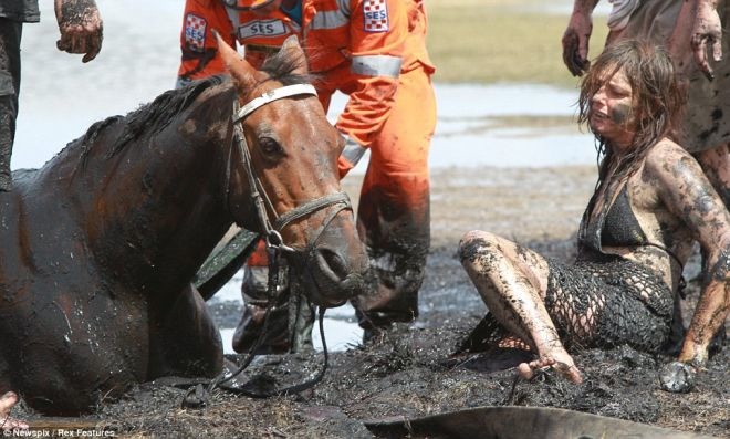 In life, we like to have fun and enjoy different activities. Some people like trying new things or more challenging activities. Normally these activities should lead to fun, but sometimes it comes with the contrary. Nicole Graham and her daughter, were on a horse ride and that moment of joy turned in a nightmare. While they were on their horses along the coast of Geelong, Australia, the soggy land gave away. Because of that the two horses were stuck. The mother saved her daughter first and went back to her horse that is named Astro. He was sinking in the quagmire, but Nicole was so courageous that she kept his head above the water. Her daughter called the rescue and they responded.