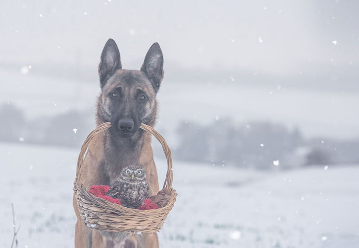 Professional animal photographer and collage artist in Germany, Tanja Brandt, captured this unlikely yet beautiful friendship of Ingo and Poldi on adorable pictures