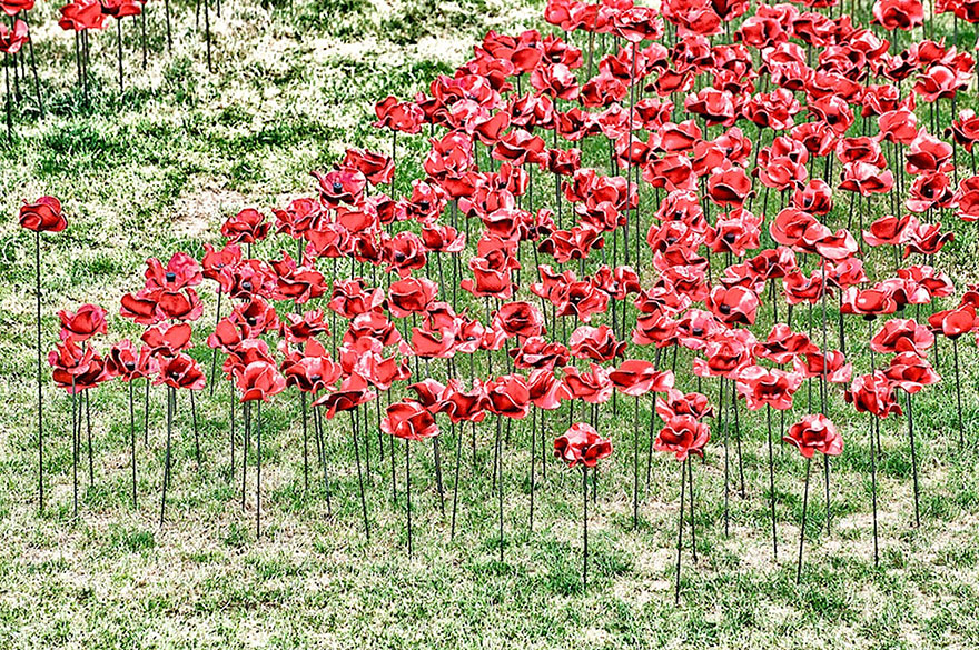 This summer, the Tower of London is going to be covered with a sea of crimson. This piece of art is perceived by artist Paul Cummins and designer Tom Piper.  These two artists will memorialize each and every British or Colonial fatality from World War 1 by planting 888, 246 red ceramic poppies in a flowing sea around the tower.