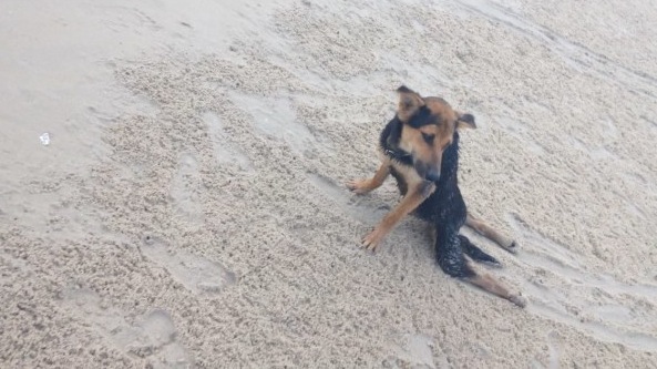 While there at a beach, she came across a paralyzed dog struggling to walk at the beach. She helped him to the vet where he was diagnosed with a broken spine after an X-Rays was taken.