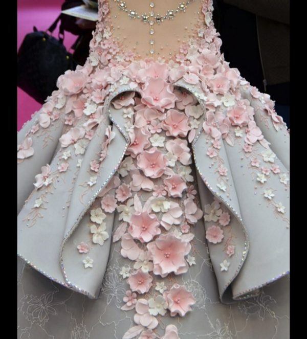 This dress also weighs a lot more than you might expect. A whopping 132 pounds of fondant were used to create the dress and an additional 110 pounds of modeling paste went in to making the flowers.