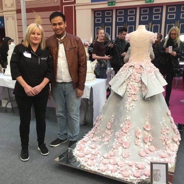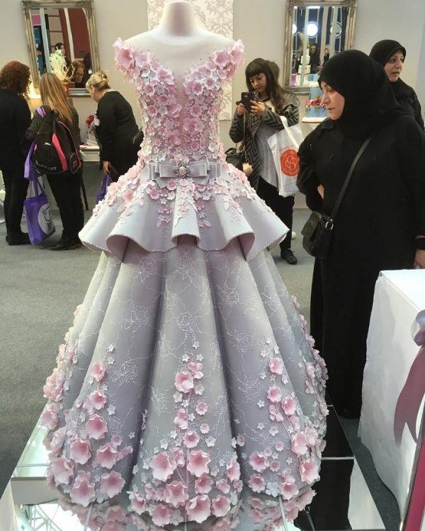 The dress was so large and heavy it took a group of six people to get it over the top of the gate outside. The dress was originally created as edible art to show off at London’s Cake International trade show.