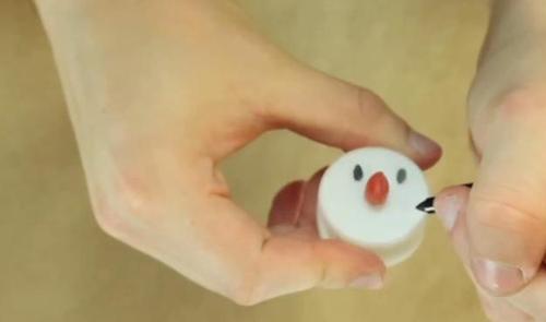 2. You’ll use the orange-colored marker to color only the plastic flame so that it resembles the traditional carrot nose of a snowman.