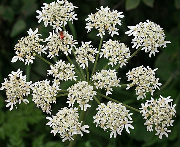 Giant Hogweed sometimes is referred to as hogsbane, or cartwheel-flower. It’s also called giant cow parsnip, or (giant) cow parsley, too.