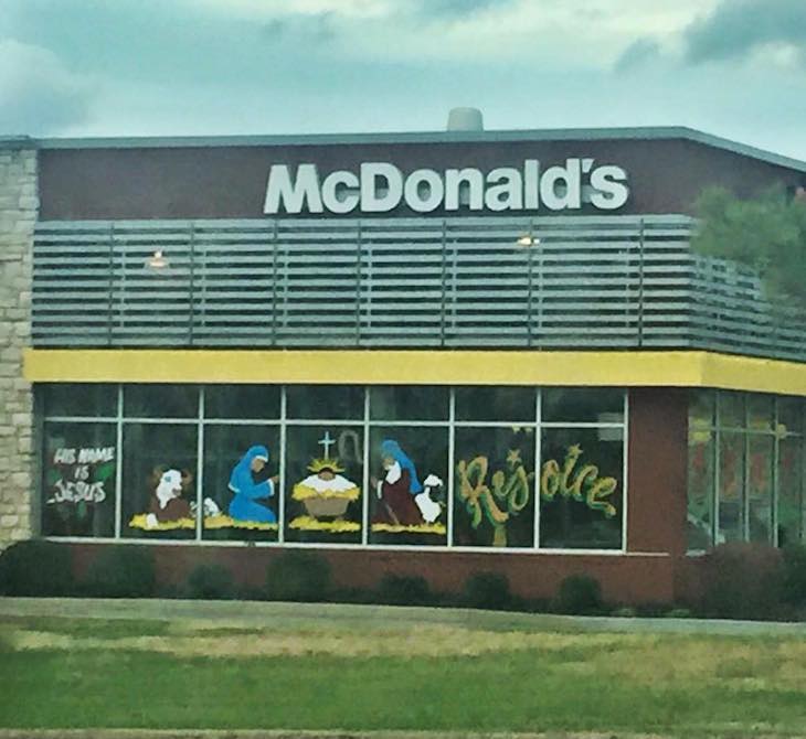 With Christmas just around the corner, it’s easy to get wrapped up in the trees, twinkling lights and presents. So when one woman drove by a McDonald’s restaurant in Spring Hill, Tennessee, and saw something shocking in the window, she immediately snapped a picture.
