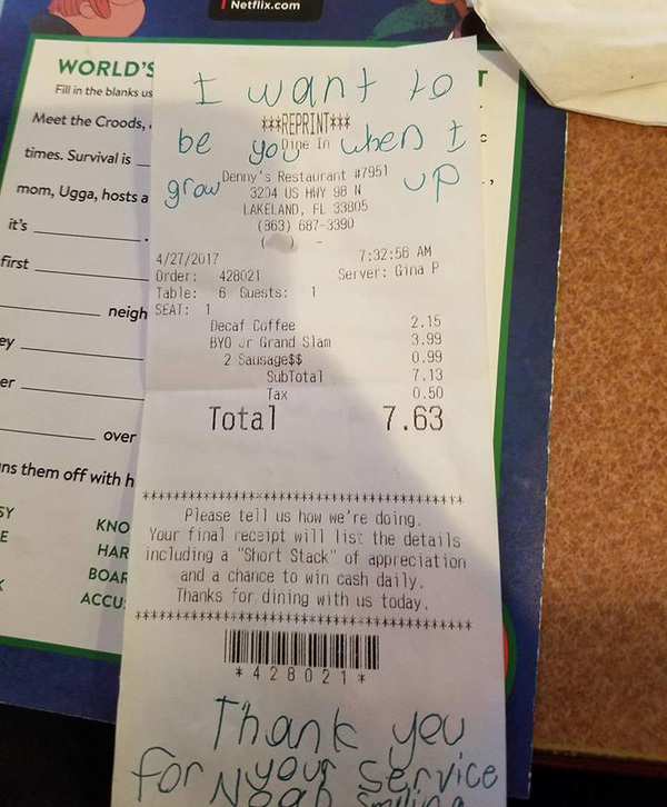 Back in April, police officer Eddie Benitez went to a restaurant in Lakeland, Florida to have breakfast. But little did he know that sitting at another table was a little boy with an important message for him.