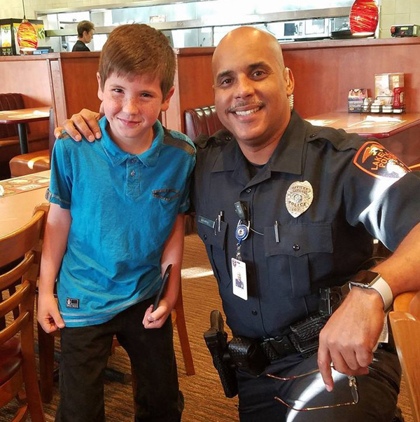 While nine-year-old Noah was eating breakfast with his mom that day, he saw police officer Eddie Benitez at a nearby table. The boy got nervous and didn’t know what to do. He wanted to talk to officer, but he didn’t know how to approach him.